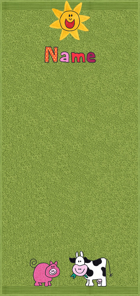 Das Baby-Badtuch mit Namen, Motiv und Sonne zeichnet sich durch die leuchtende Sonne, die lustigen und fröhlichen Motive aus und dass die Namen für jedes Tuch individuell gewählt werden können.